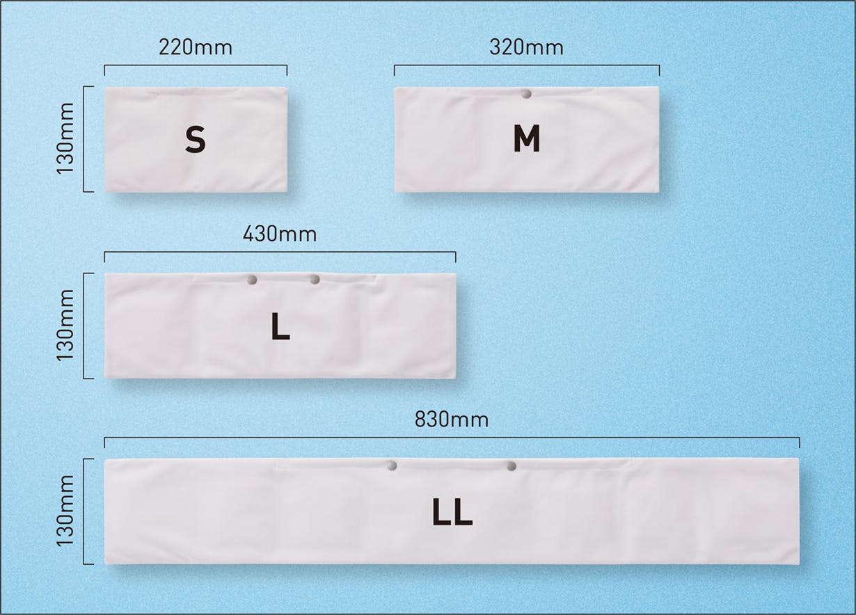 そこで、約10cm四方のセルを連続で生産する製造装置を採用。そうすることで、ハンカチサイズの約15cmから、最大のLLサイズでフェイスタオル並みの長さ約80cmと5倍以上の長さを実現しました。