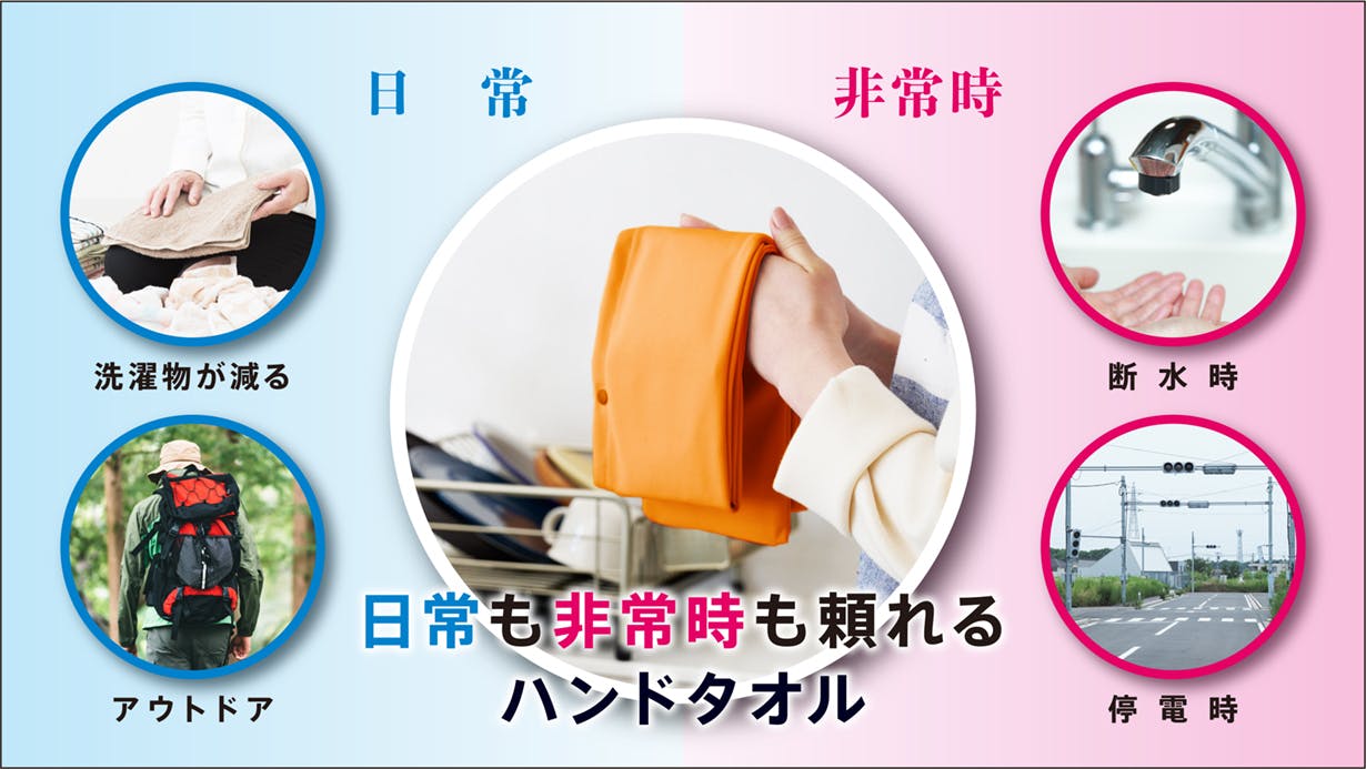 日常ではもちろん、断水や停電などの非常時やアウトドアでの洗濯できない・しにくい状況でも、とても頼りになるハンドタオルです。